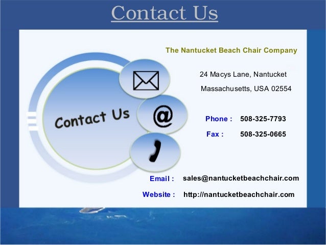 Nantucket beach chair company, nantucket, ma. Business directory news releases events calendar hot deals member to member deals marketspace job postings contact us information & brochures. The nantucket beach chair company was founded in 2005, and is located at 24 macys ln in nantucket.