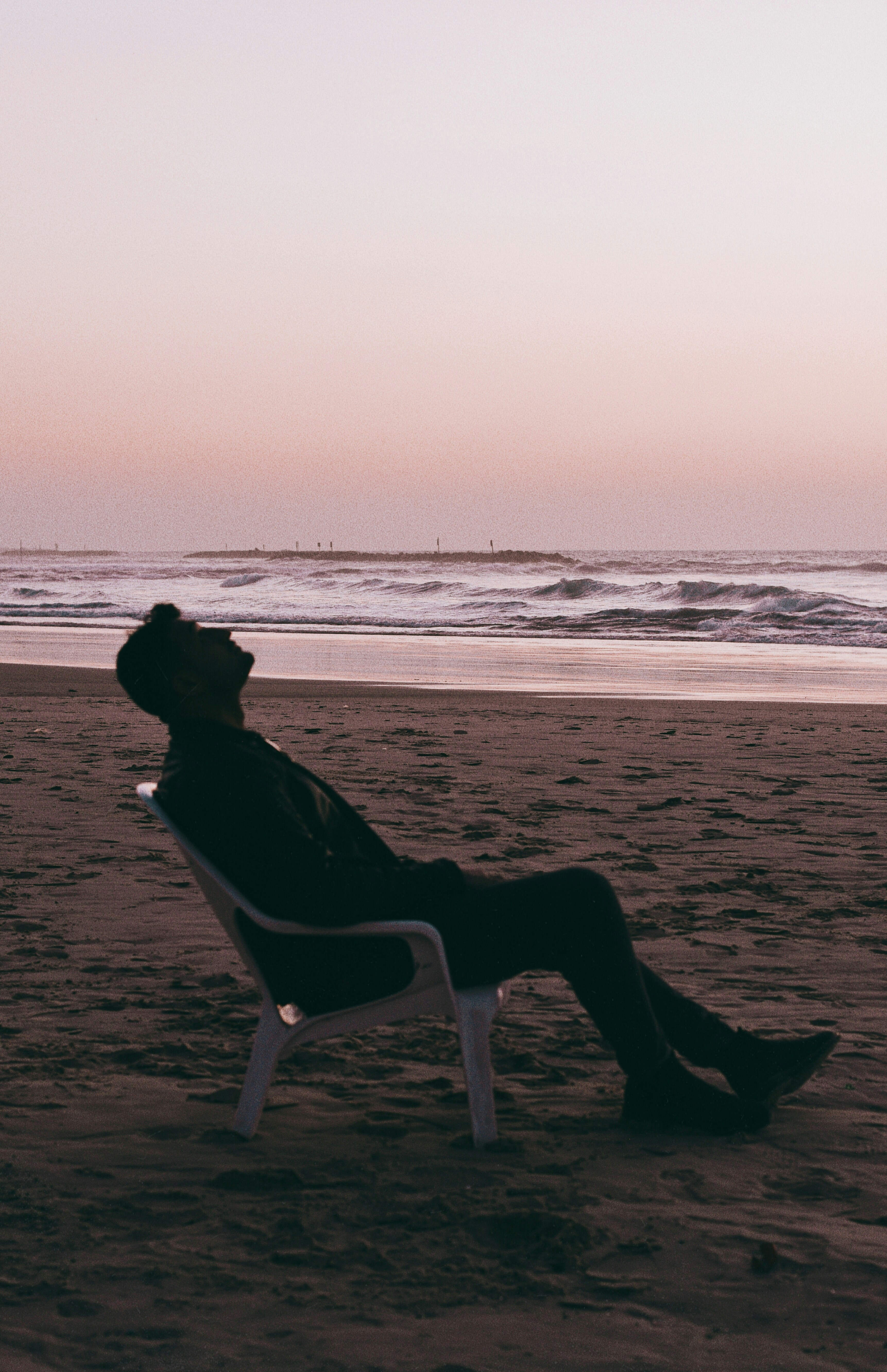 Someone Sitting In A Beach Chair . Chairs standing in a water on beach. If someone said they were sitting on the armchair, my assumption would be that they were sitting on the arm of.